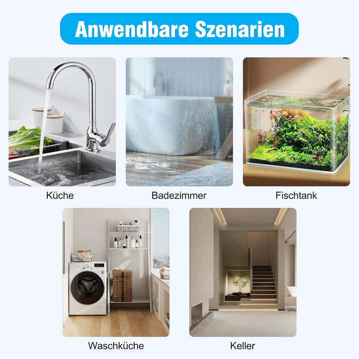 - 【Überwachung und Alarm in Echtzeit】Eingebaute hochpräzise Sensoren überwachen die Überschwemmung im Installationsbereich in Echtzeit. Sobald die Überschwemmung erkannt wird, wird der Alarm sofort ausgelöst, um sicherzustellen, dass Sie wissen