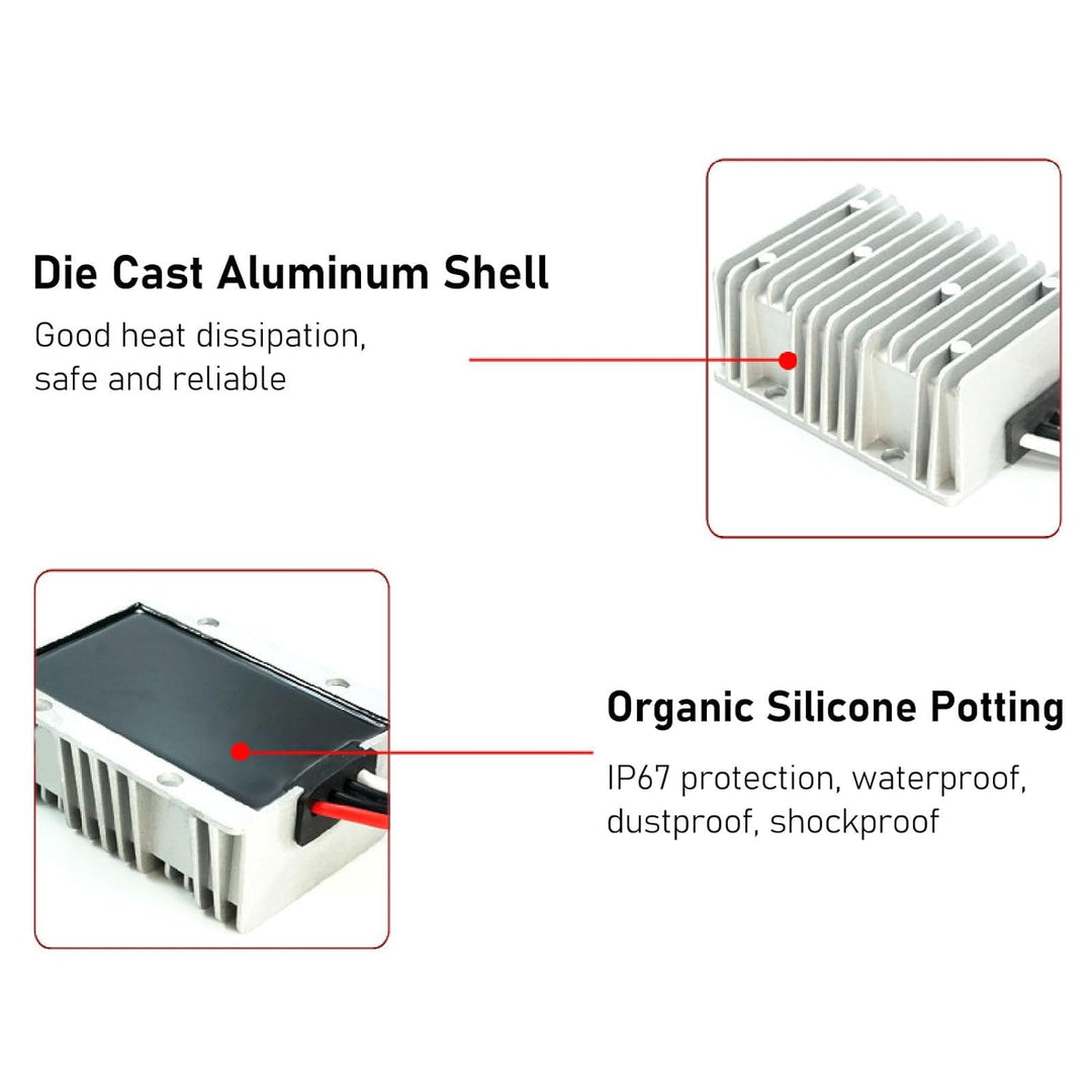 - [Robustes Design] Das vollständig versiegelte Gehäuse dieses DC-DC-Aufwärtswandlers ist wetterfest, stossfest und staubdicht und sorgt für Robustheit und Langlebigkeit.
