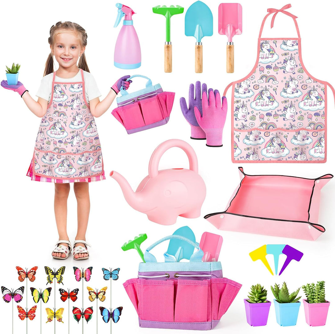 - 🌸Kinder-Gartenspielzeug | Gartengeräte für Kinder- Dieses Kinder-Gartenwerkzeug-Set enthält 1 Schürze, 3 Schaufelwerkzeuge, 1 Elefanten-Wasserflasche, 1 Bodenmatte, 1 Handtasche, 1 Bewässerungsflasche, 3 Pflanzentöpfe, 7 Pflanzenetiketten, 12