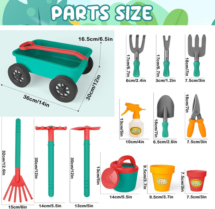 - deAO Schubkarre und Gartenspielset & sandspielzeug set: Das perfekte Geschenk für Ihren kleinen grünen Daumen. Mini garten set kinder, 14pcs schubkarre kinder mit zubehör, enthalten. Eine fantastische Möglichkeit, mit Ihrem Kind durch Spielen zu
