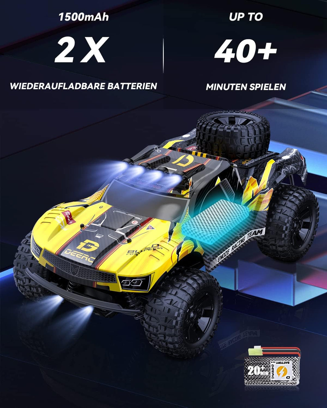 - 【1:10 Hochgeschwindigkeits-RC-Auto】DEERC 9201E 1/10 Massstab Ferngesteuertes Auto ist mit einem leistungsstarken 540er Motor, verstärkten Stossfängern, LED-Lichtanlage und geländegängigen Reifen ausgestattet, um jedes hochfliegende und