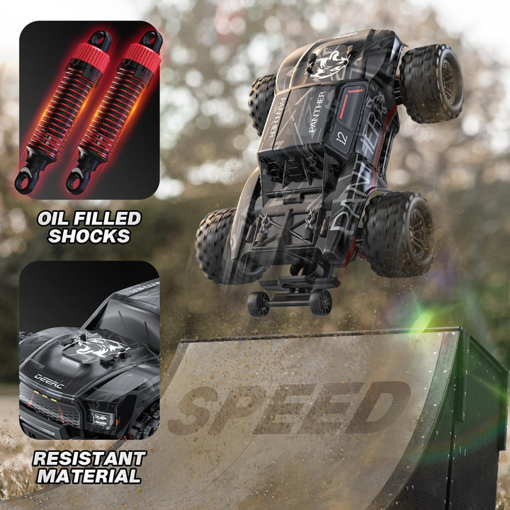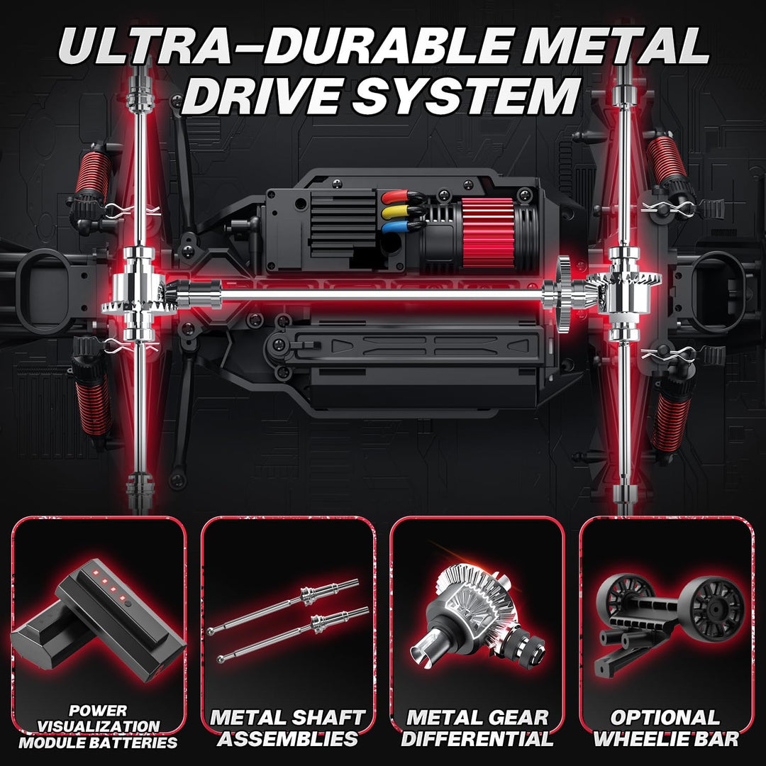 - 【60+ KM/H Hohe Geschwindigkeit】 Der leistungsstarke 4000KW bürstenlose Motor sorgt für maximale Leistung bei geringem Energieverbrauch, die Höchstgeschwindigkeit kann bis zu 75+ KM / 46 + MPH erreichen, mit dem 30A Brushless-ESC haben Sie mehr