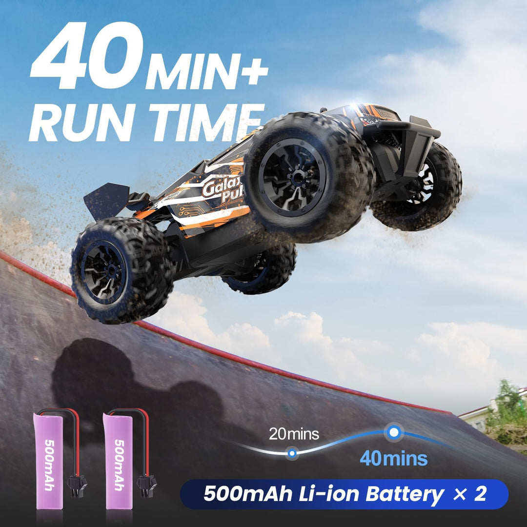 - 【2 langlebige Batterien】 2 * wiederaufladbare 3,7-V-500-mAh-Batterien für den Monstertruck, können etwa 40 Minuten halten und sorgen für ein langlebiges Erlebnis! HINWEIS:NEHMEN SIE DIE BATTERIE NACH DEM GEBRAUCH AUS DEM BATTERIEFACH.