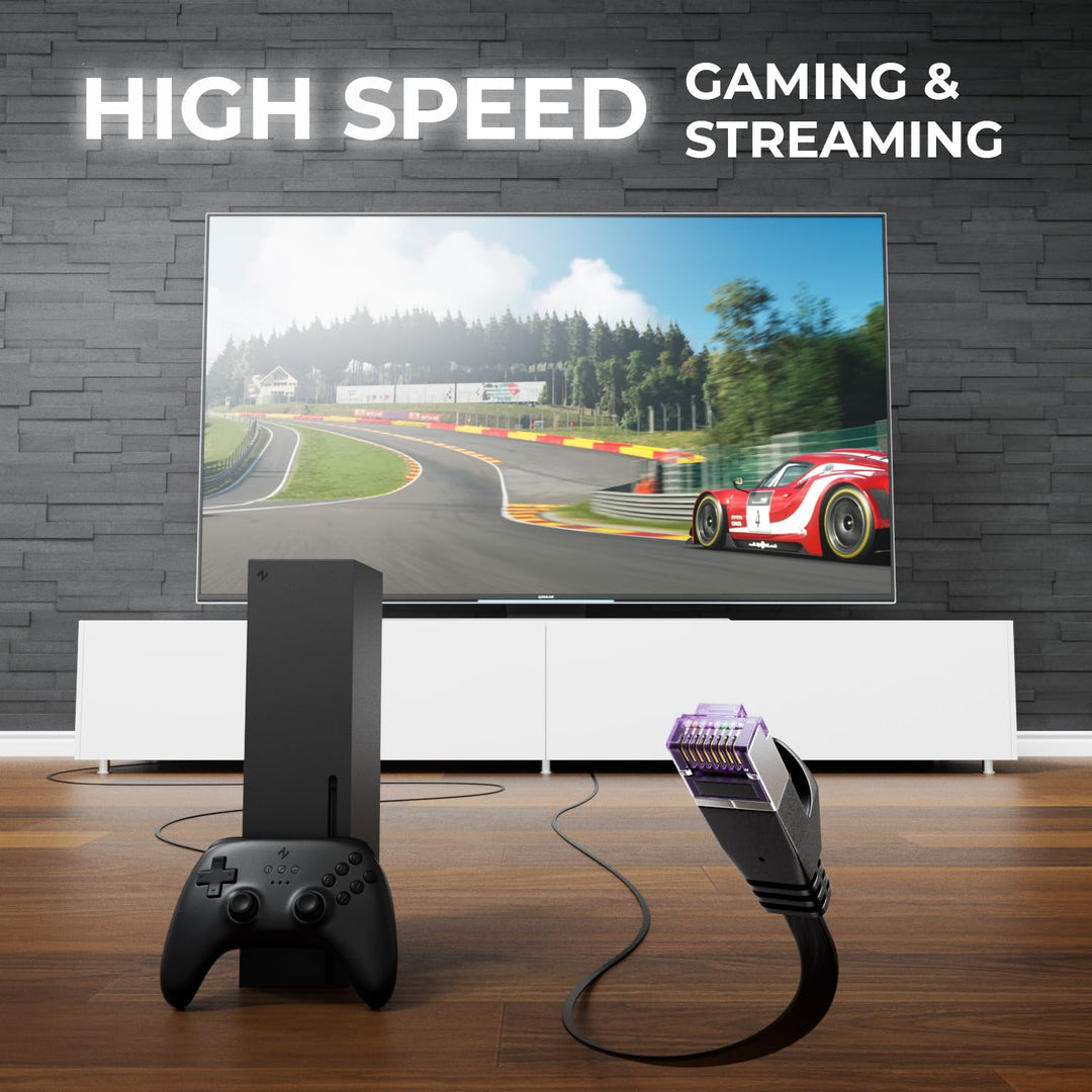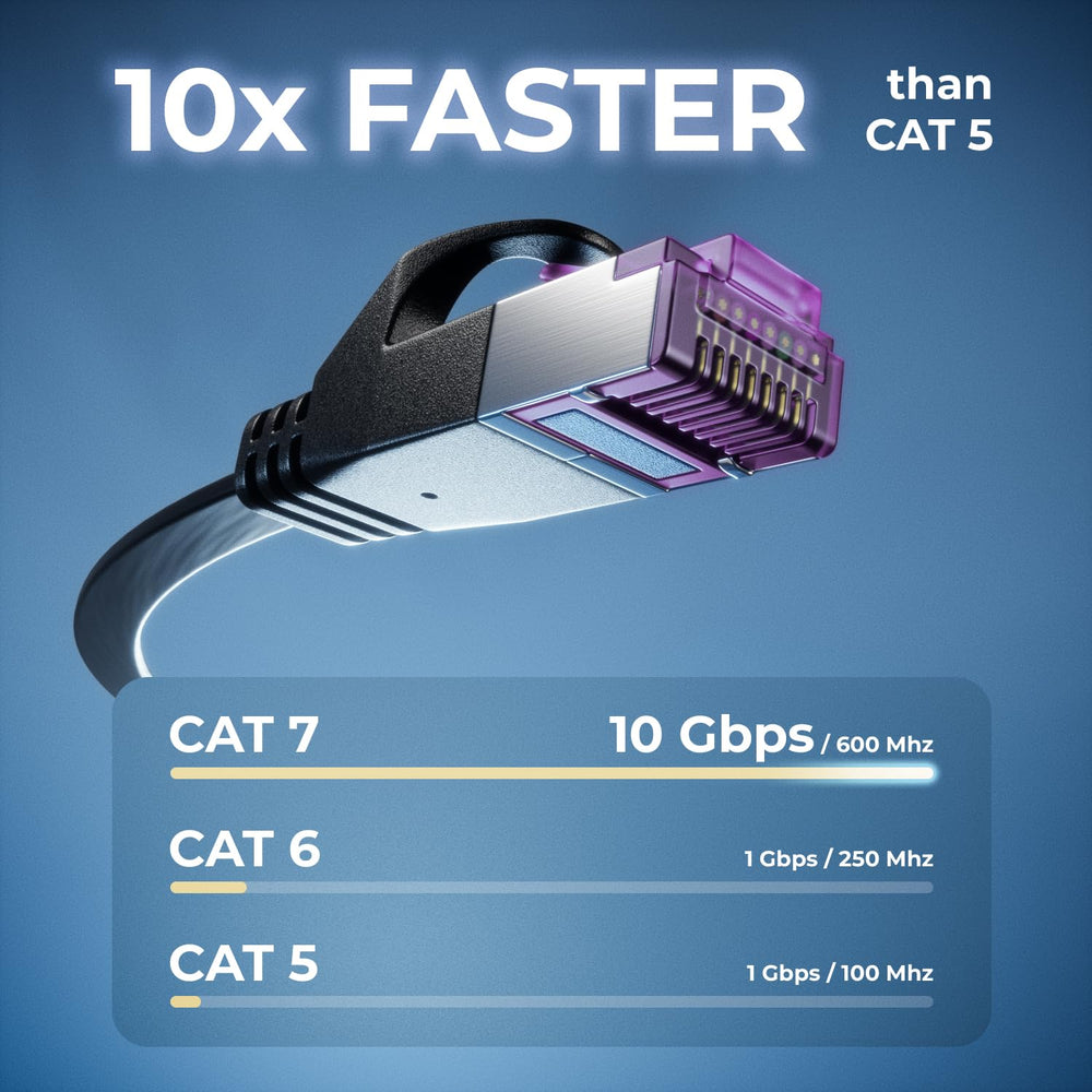 - deleyCON flaches Patchkabel mit CAT7 Rohkabel (U-FTP) als Set // Gigabit LAN DSL Flach-Kabel // 2x geschirmte, genormte RJ45 Netzwerk-Stecker