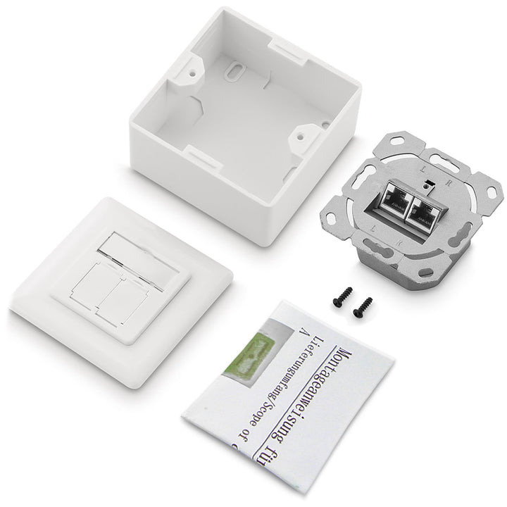 - deleyCON CAT 6 Universal Netzwerkdose // 2x RJ45 Port mit Schirmung // Für Aufputz- und Unterputzmontage geeignet