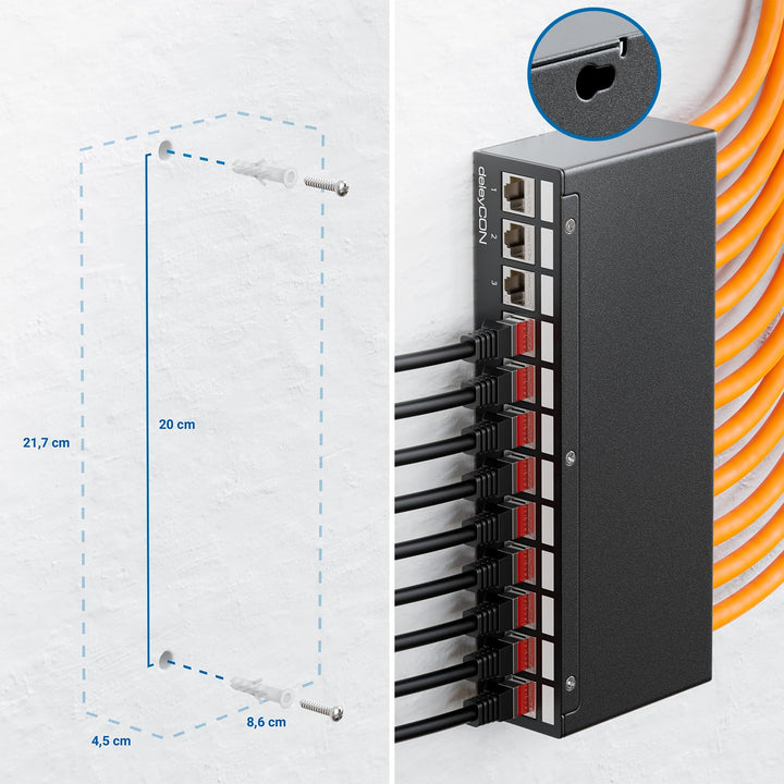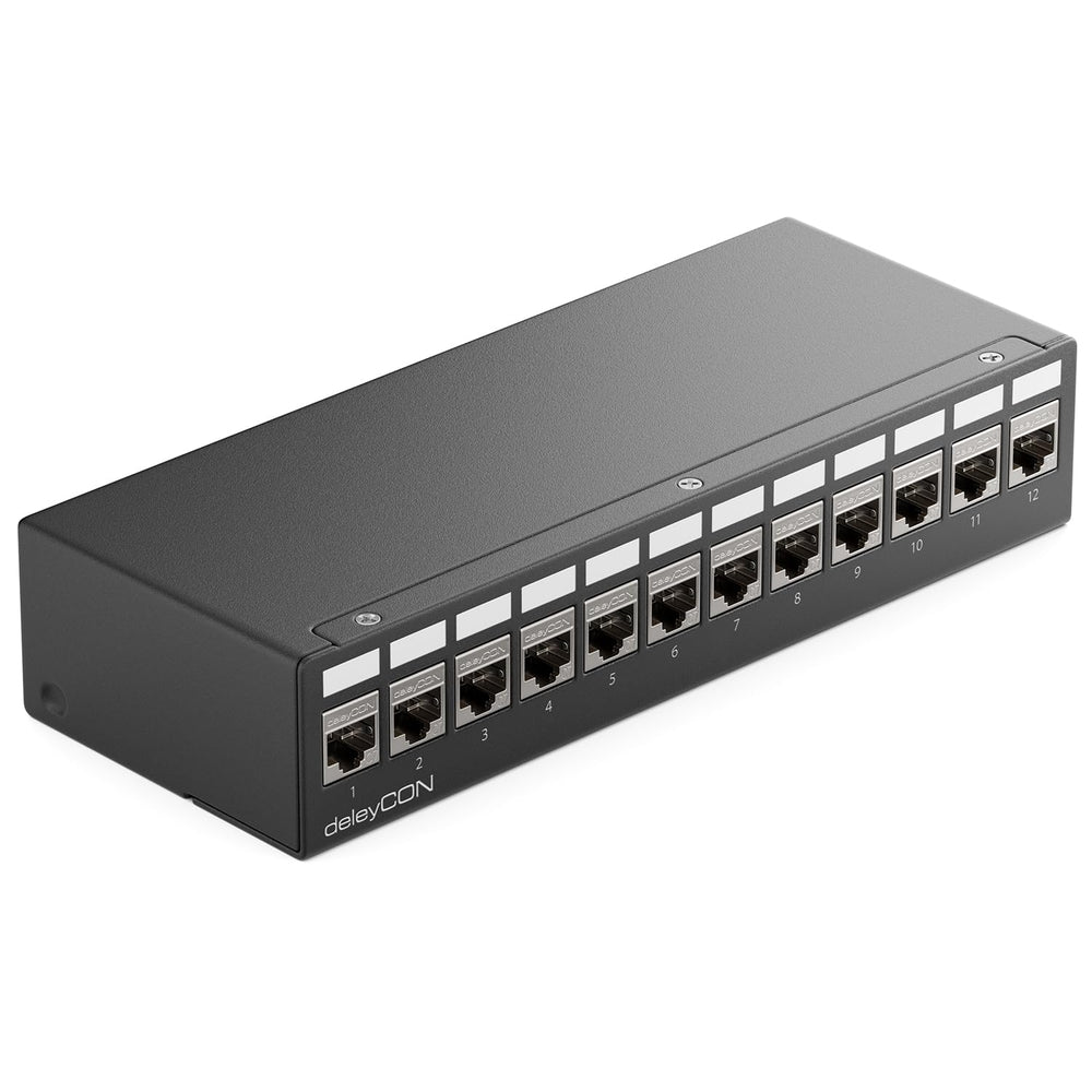 - deleyCON 12-Port Patchpanel Patchfeld Verteilerfeld inkl. RJ45 Keystone Module CAT 7 als Set // Übertragungsgeschwindigkeit bis zu 10 Gbit/s