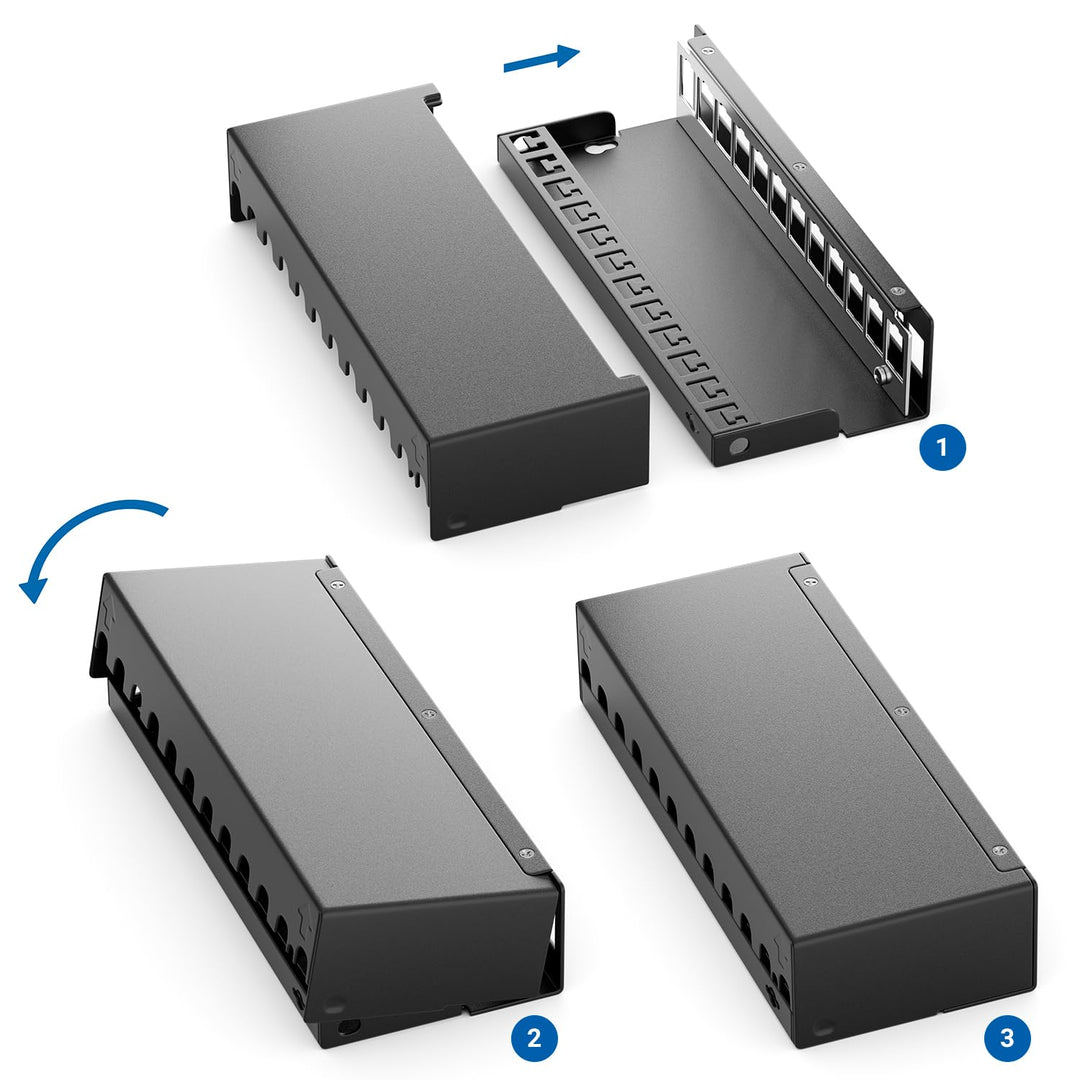 - Patchpanel: Kompatibel mit allen handelsüblichen & standardisierten 14,9 mm x 17 mm Keystone Modulen (12 Stück im Lieferumfang enthalten)