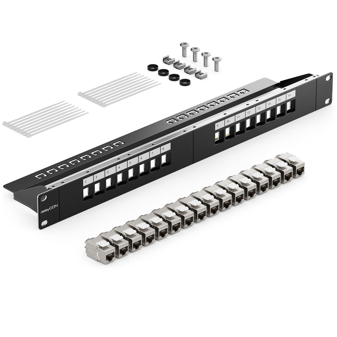 - deleyCON Patchpanel Verteilerfeld // 16-Port // Für den privaten und professionellen IT Bereich konzipiert