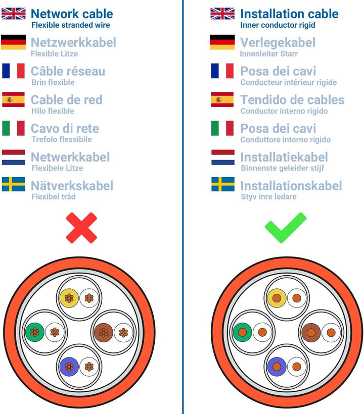 - Kupfer Verlegekabel starr für LSA Anschlüsse: Netzwerkdosen, Patchpanel, Keystone Module etc.