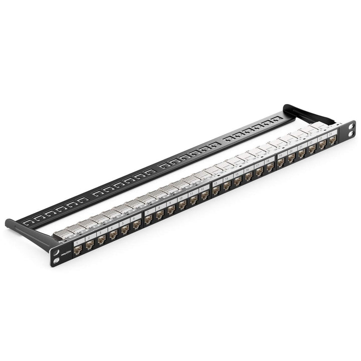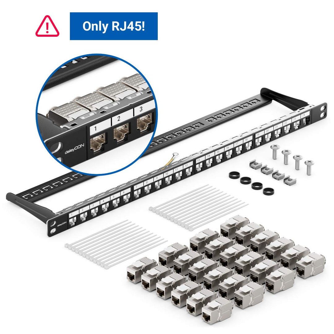 - deleyCON 24 Port Patchpanel Patchfeld Modular 0,5 HE // Zum Bestücken mit RJ45 Keystone Modulen (24 Stück inklusive) // Zuverlässige, störungsfreie Datenübertragung