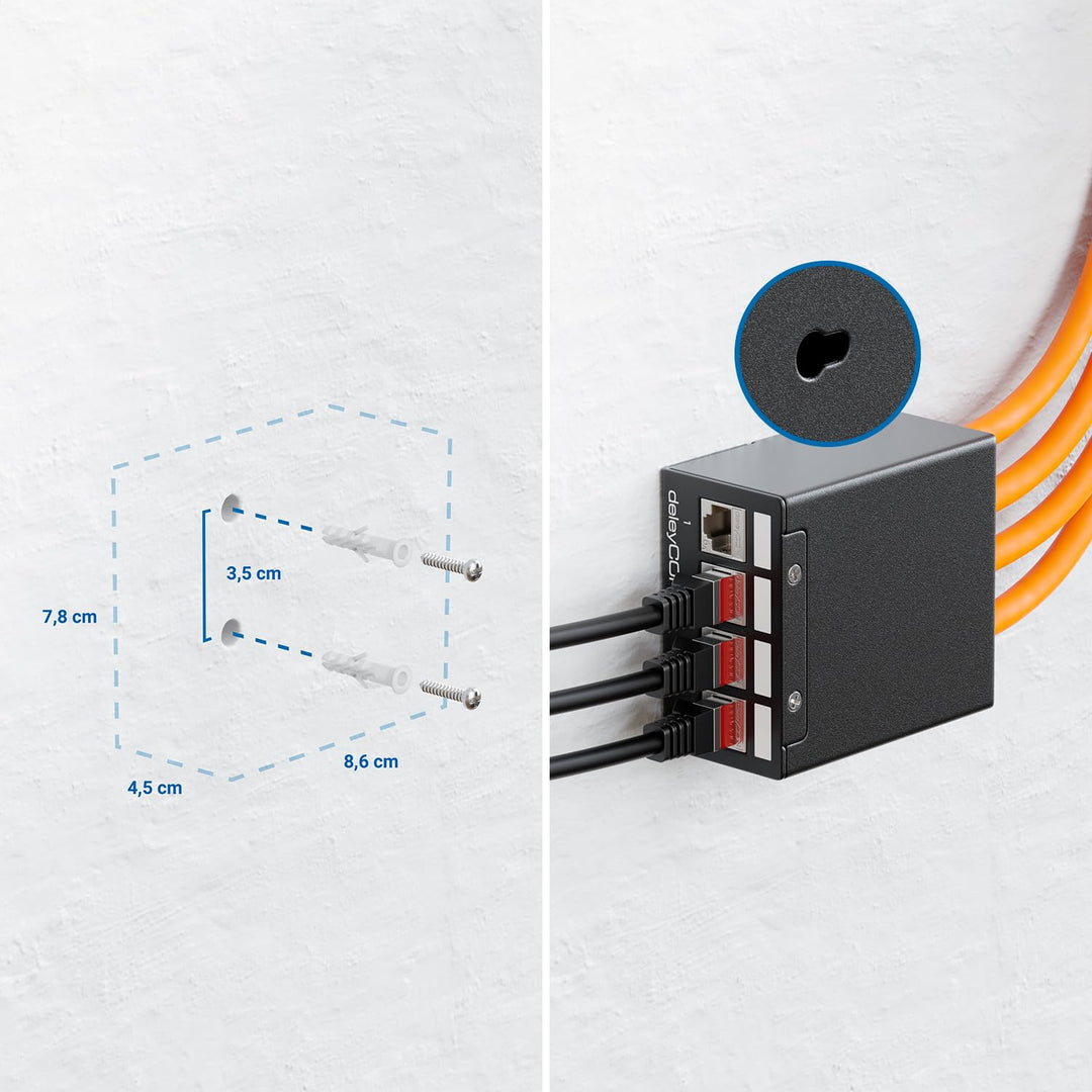 - deleyCON 4-Port Patchpanel Patchfeld Verteilerfeld inkl. RJ45 Keystone Module CAT 6a als Set // Übertragungsgeschwindigkeit bis zu 10 Gbit/s & 500 MHz