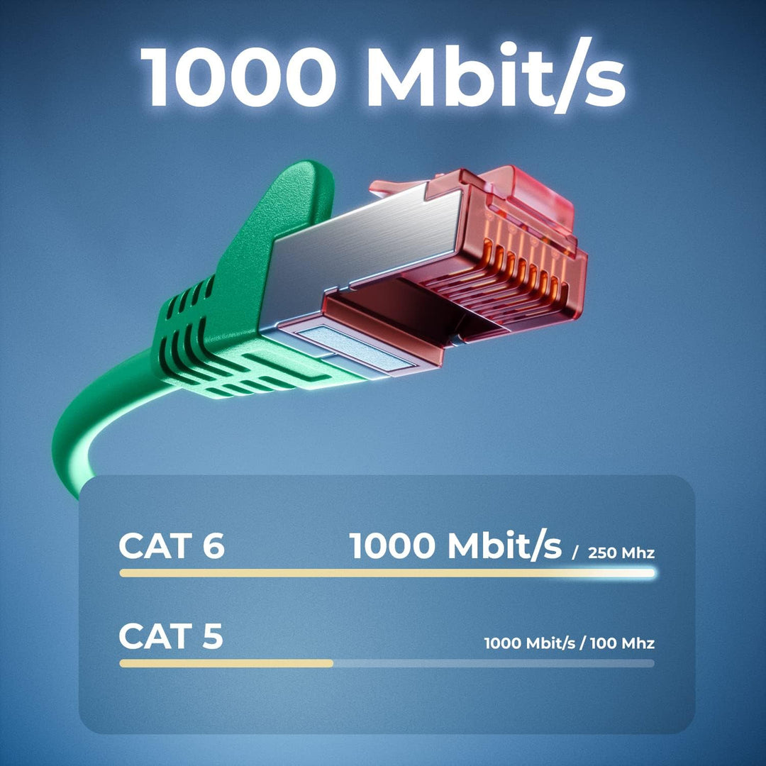 - deleyCON CAT 6 Patch-Kabel Netzwerk-Kabel // Gigabit LAN DSL Kabel // 2x geschirmte, genormte RJ45 Netzwerk-Stecker // Hochwertiger CU (Kupfer) Innenleiter // Halogenfrei LSZH