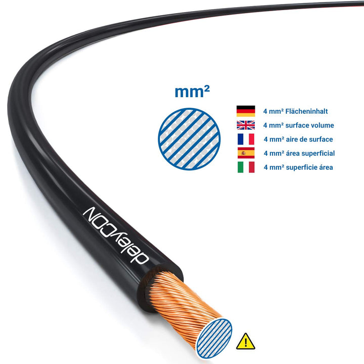 - Lieferung: deleyCON Lautsprecherkabel // Innenleiter Querschnitt: 2x 4,0mm² // Litze: 2x56x0,30mm