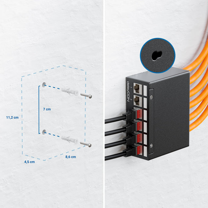- deleyCON 6-Port Patchpanel Patchfeld Verteilerfeld inkl. RJ45 Keystone Module CAT 6a als Set // Übertragungsgeschwindigkeit bis zu 10 Gbit/s & 500 MHz