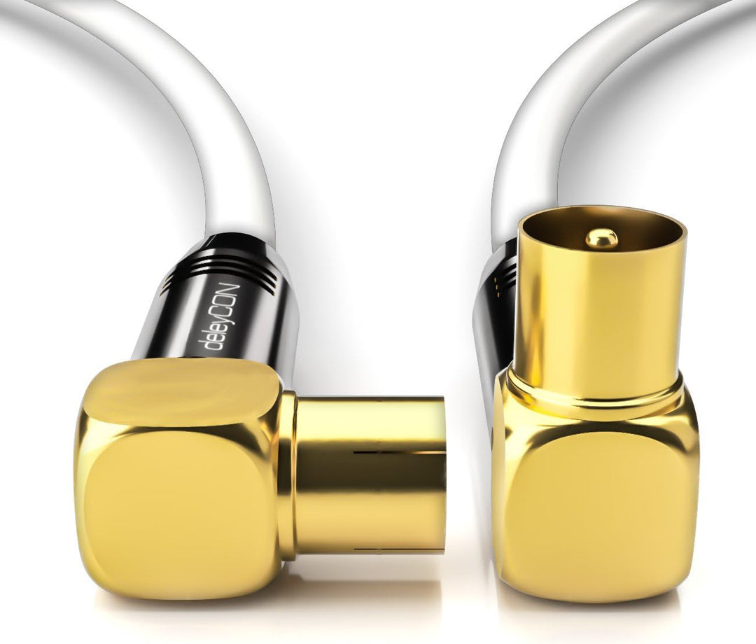 - Anschluss: 90° TV-Stecker zu 90° TV-Buchse (beide 90° gewinkelt) // Für alle TV Geräte und Kabel Receiver geeignet