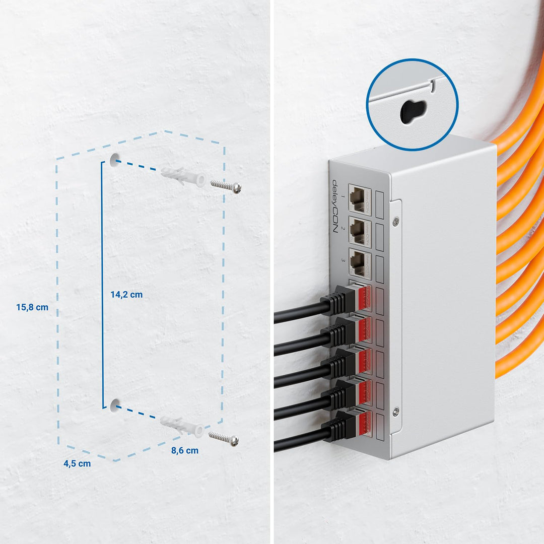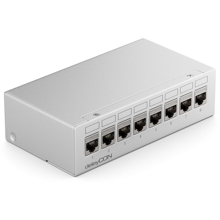 - deleyCON 8-Port Patchpanel Patchfeld Verteilerfeld inkl. RJ45 Keystone Module CAT 6a als Set // Übertragungsgeschwindigkeit bis zu 10 Gbit/s & 500 MHz