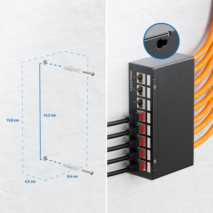 - deleyCON 8-Port Patchpanel Patchfeld Verteilerfeld inkl. RJ45 Keystone Module CAT 6a als Set // Übertragungsgeschwindigkeit bis zu 10 Gbit/s & 500 MHz