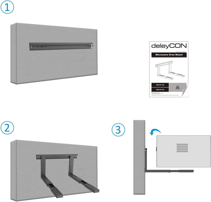 - deleyCON Mikrowellenhalterung Universalhalterung // Bringt wertvollen Platz zurück // Mikrowelle, Backofen, Grill uvm. sicher an die Wand hängen