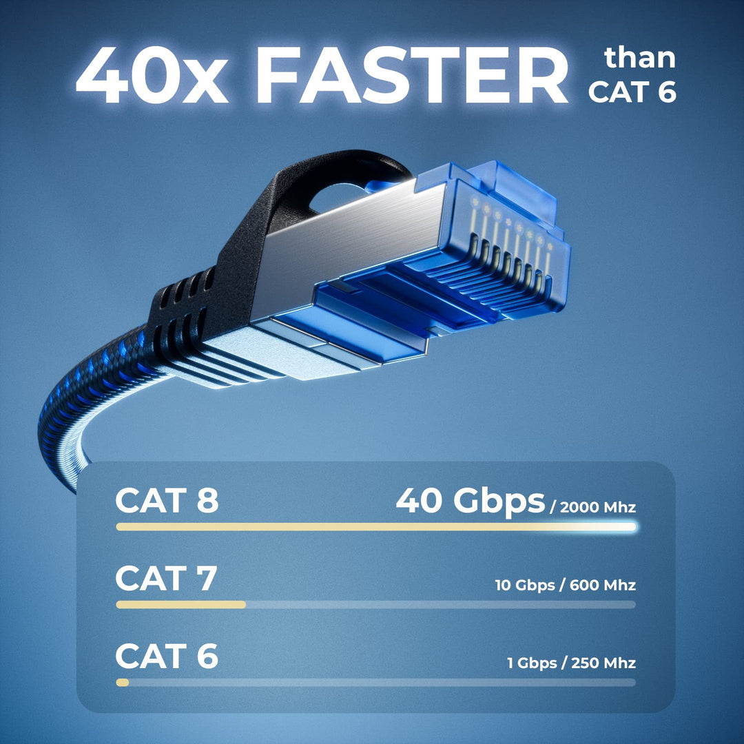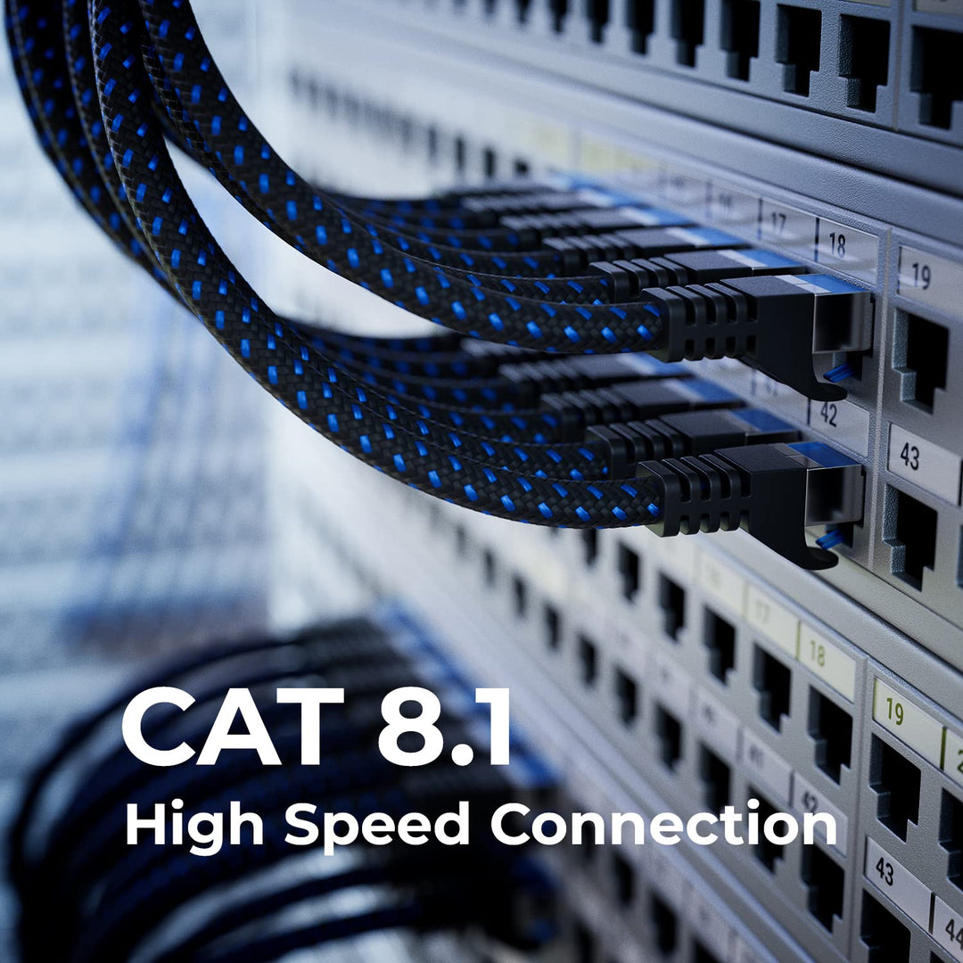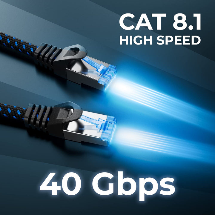 - deleyCON CAT 8.1 Patchkabel Netzwerkkabel mit Nylonmantel 2x RJ45 Stecker // S/FTP PIMF Schirmung