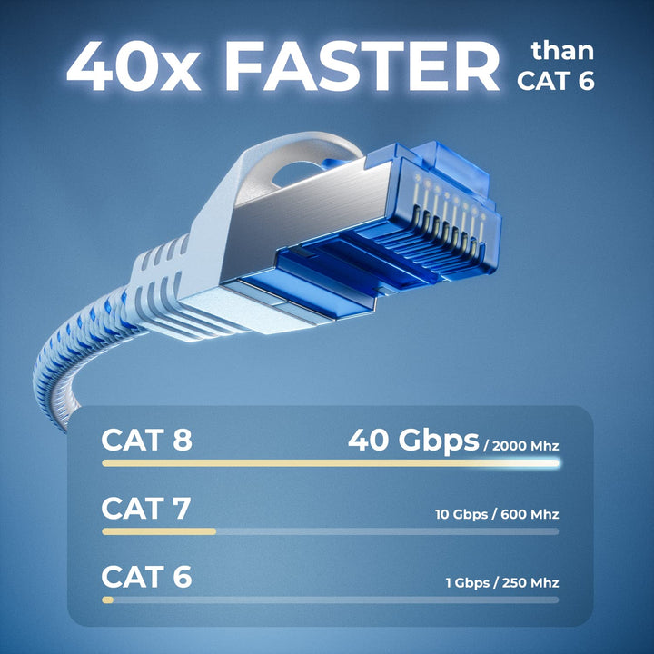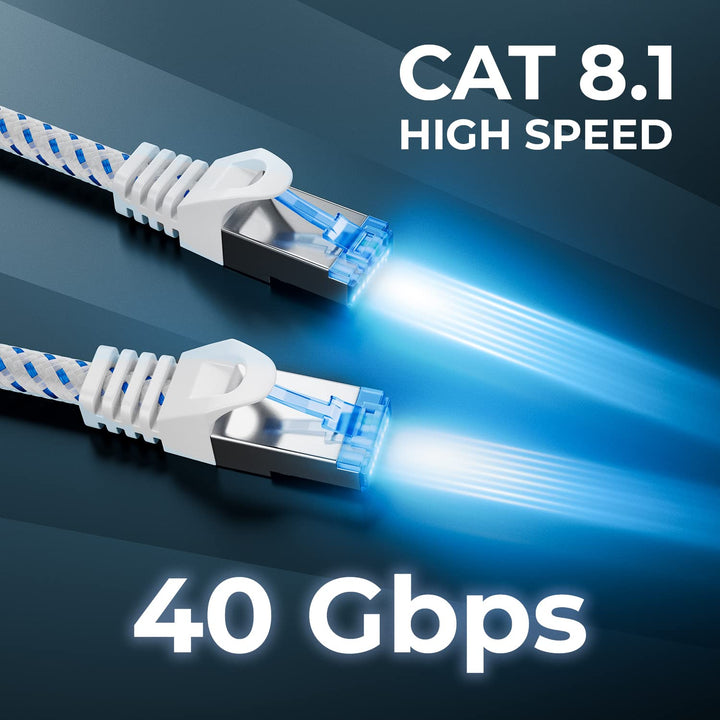 - deleyCON CAT 8.1 Patchkabel Netzwerkkabel mit Nylonmantel 2x RJ45 Stecker // S/FTP PIMF Schirmung
