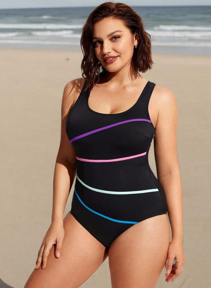 - Einteiliger Badeanzug mit bescheidener Abdeckung, Wide Träger gültig für stabil.
