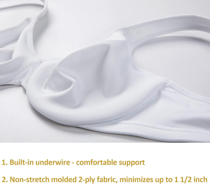 - Ungepolstertes doppellagiges Cup-Design, das die Brust optisch verkleinert.