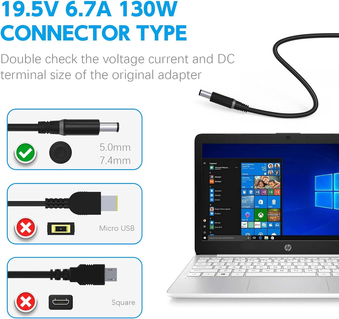 - Sicherheit und Leistung: Notebook Netzteil ist gegen Kurzschluss und Überspannung geschützt. Das sauerstofffreie Kupferkühlsystem macht es wärmeleitend, schnell wärmeableitend und langlebig, sodass Sie sicher sein können. Das