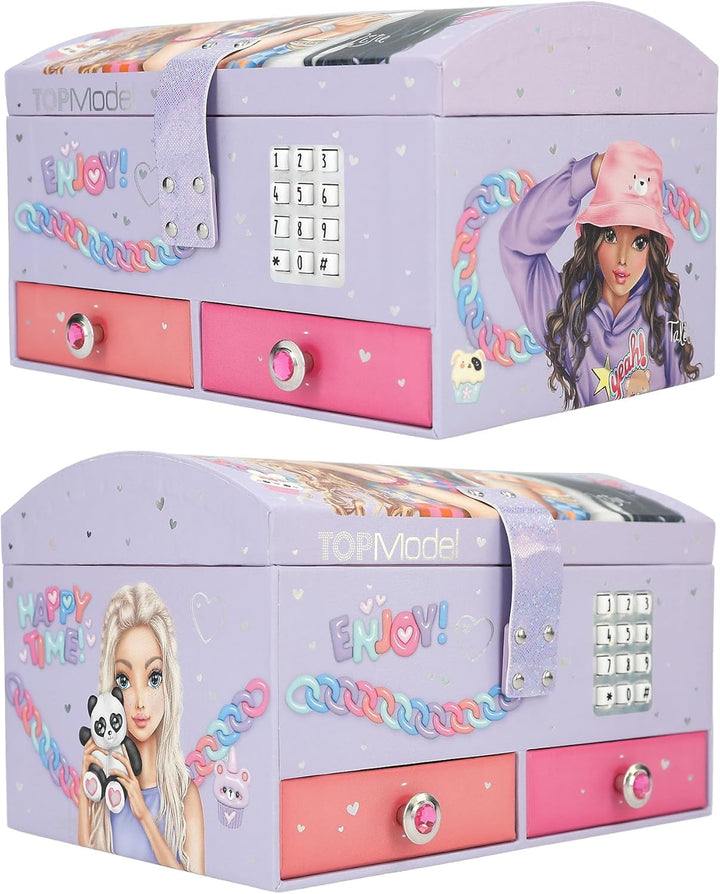 Depesche 13141 TOPModel - Grosses Schmuckkästchen in hellem Lila, mit Model Motiv und bunten Details