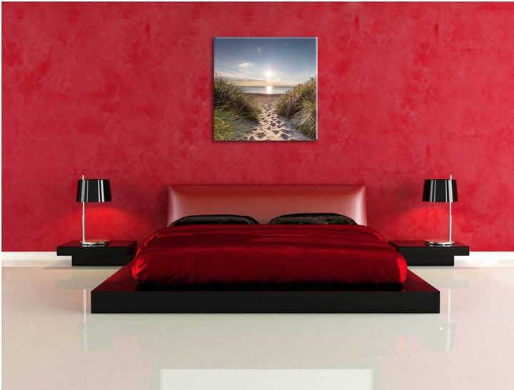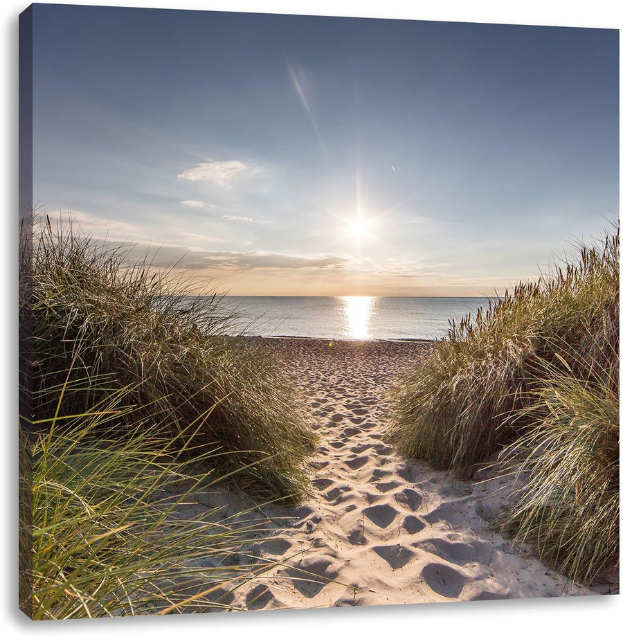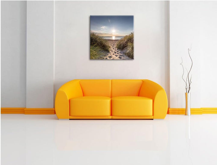 der Weg ins Meer, Format: 70x70 auf Leinwand, XXL riesige Bilder fertig gerahmt mit Keilrahmen, Kuns