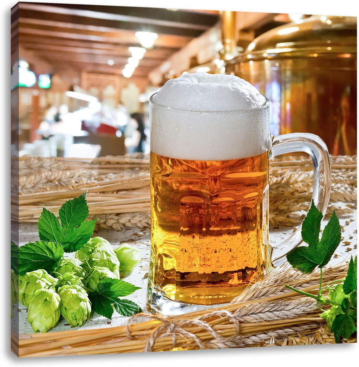 Deutsches frisches Bier, Format: 70x70 auf Leinwand, XXL riesige Bilder fertig gerahmt mit Keilrahme