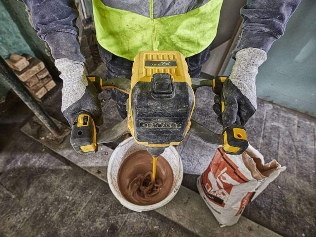 - Rührleistung pro Akku 3A: 12 Säcke Feinputz/Gipsputz