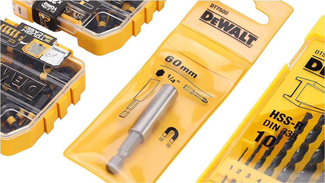 - DeWalt Werkzeugset mit Schlagbohrschrauber zum Bohren in Holz & Metall, zum Schrauben & zum Schlagbohren in Mauerwerk plus einem umfangreichen Zubehörset / 3 Jahre Garantie (bei Online-Registrierung)