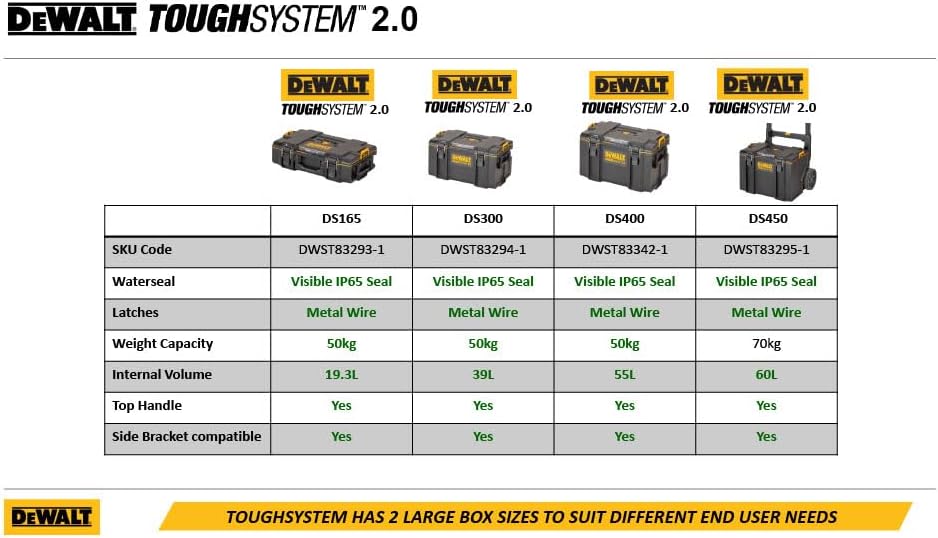 - Die neue Generation ToughSystem 2.0 mit IP65 Schutz (staubdicht / spritzwassergeschützt), kompatibel mit ToughSystem 1.0