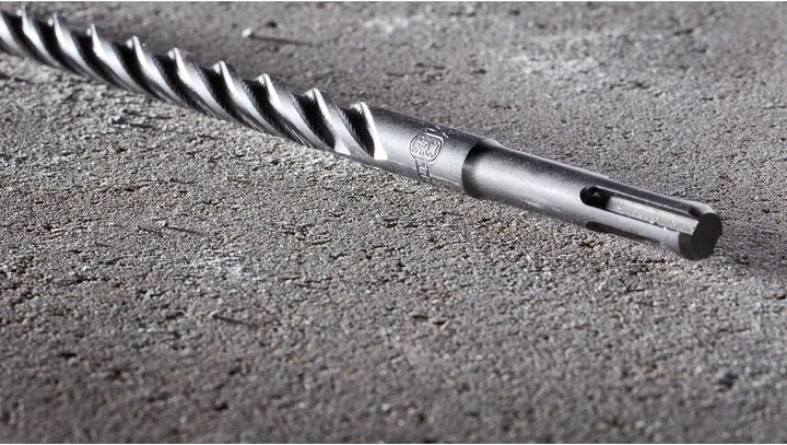 • Vierschneiden-Geometrie für saubere, kreisrunde Bohrlöcher und eine konstant hohe Bohrgeschwindigkeit. Schliesst ein Verhaken des Bohrers in armiertem Beton nahezu aus