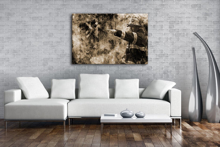 deyoli Feuerwehr Illustration Format: 80x60 Effekt: Sepia als Leinwandbild, Motiv fertig gerahmt auf