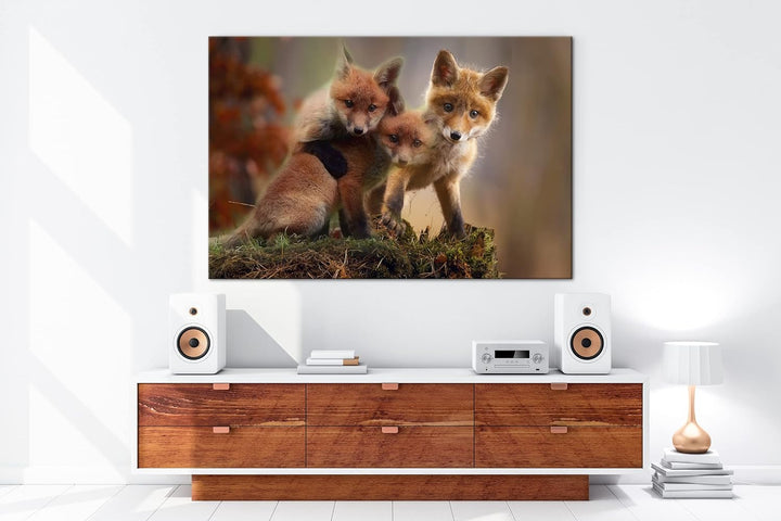deyoli Kleine Familie von Rotfüchsen Format: 120x80 als Leinwand, Motiv fertig gerahmt auf Echtholzr