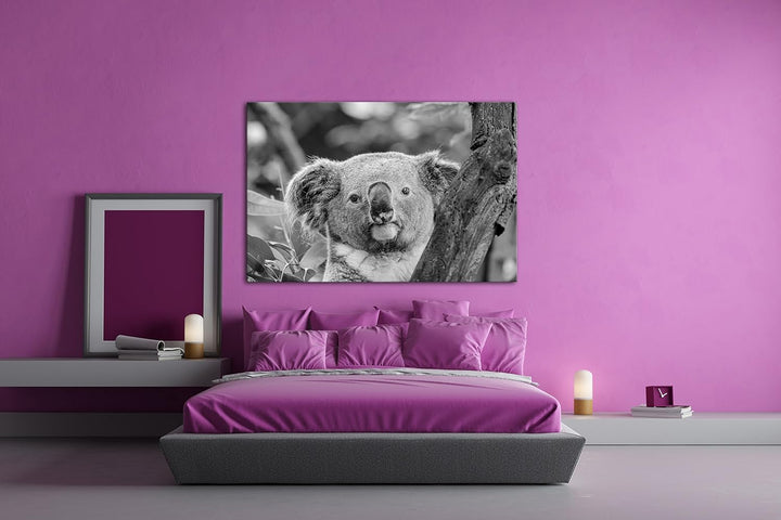 deyoli kleiner Süsser Koala Effekt: Schwarz/Weiss Format: 100x70 als Leinwandbild, Motiv fertig gera