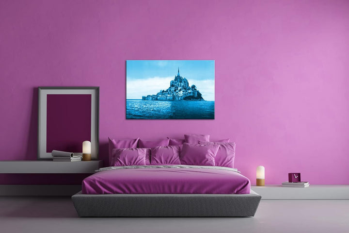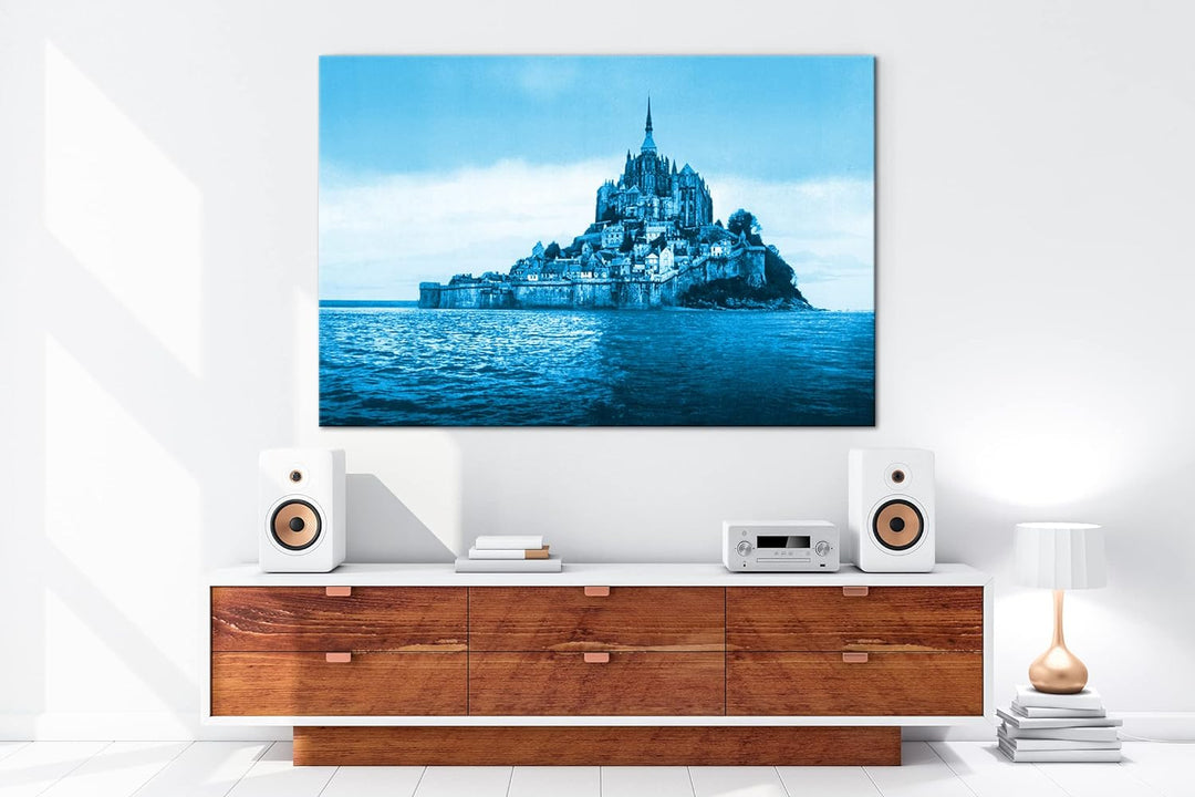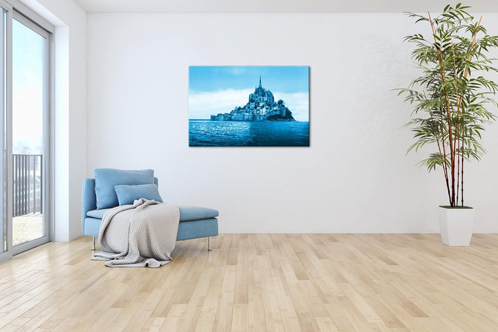 deyoli Küste von Mont St Michel Format 80x60 Effekt: Monocrome Blau als Leinwandbild, Motiv fertig g