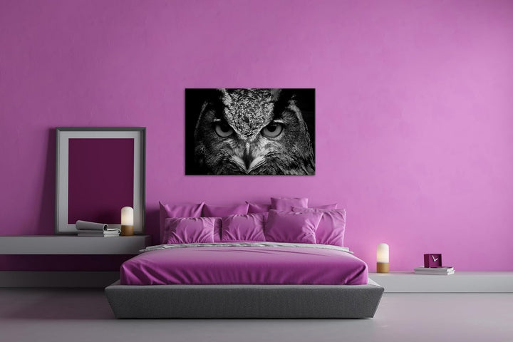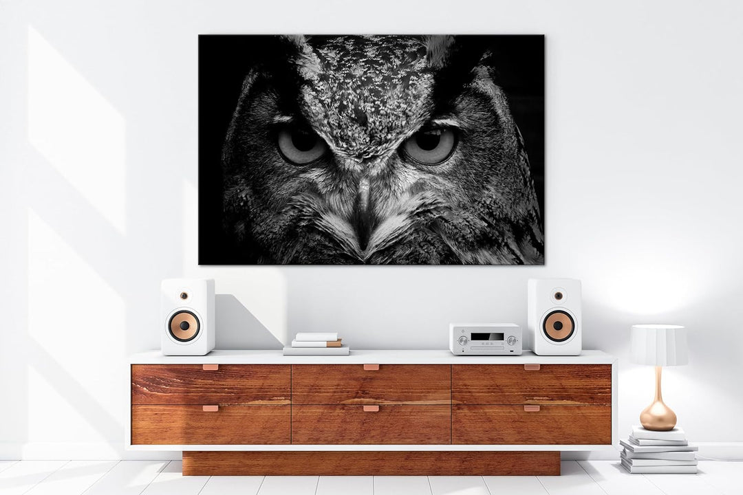 deyoli lauernde Augen einer Eule Format:75x50 cm Effekt: Schwarz/Weiss als Leinwandbild, Motiv ferti