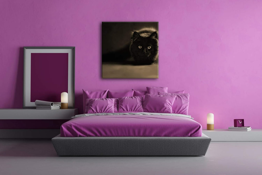 deyoli lauernde Schwarze Katze Format: 60x60 Effekt: Sepia als Leinwandbild, Motiv auf Echtholzrahme