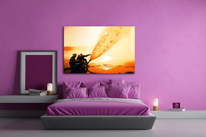 deyoli Löscharbeiten bei Feuer Format: 80x60 als Leinwandbild, Motiv fertig gerahmt auf Echtholzrahm