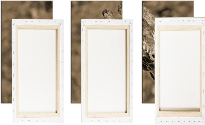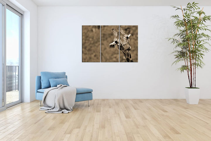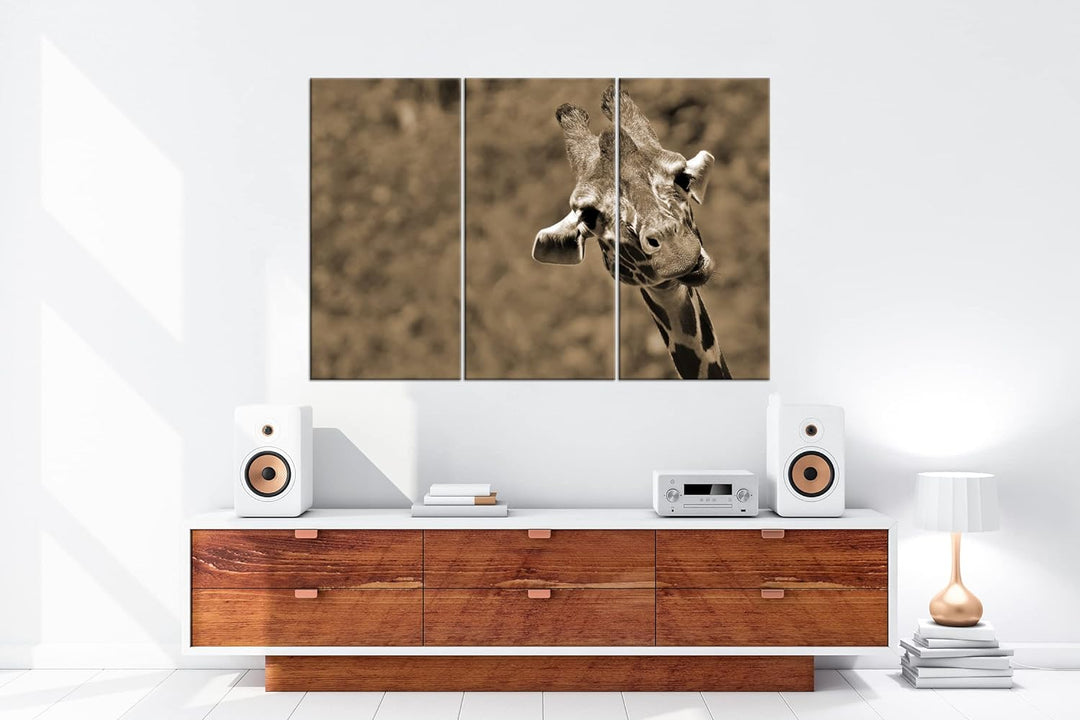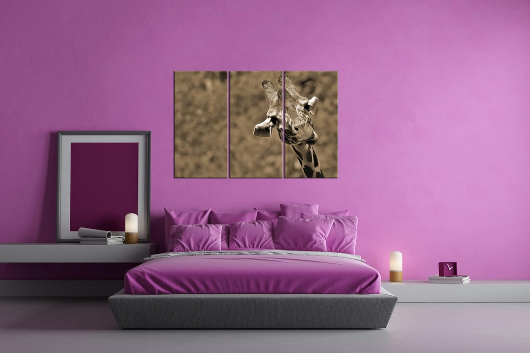 deyoli lustige Giraffe Format: 120x80 cm (3Teilig) Effekt: Sepia als Leinwandbild, Motiv fertig gera