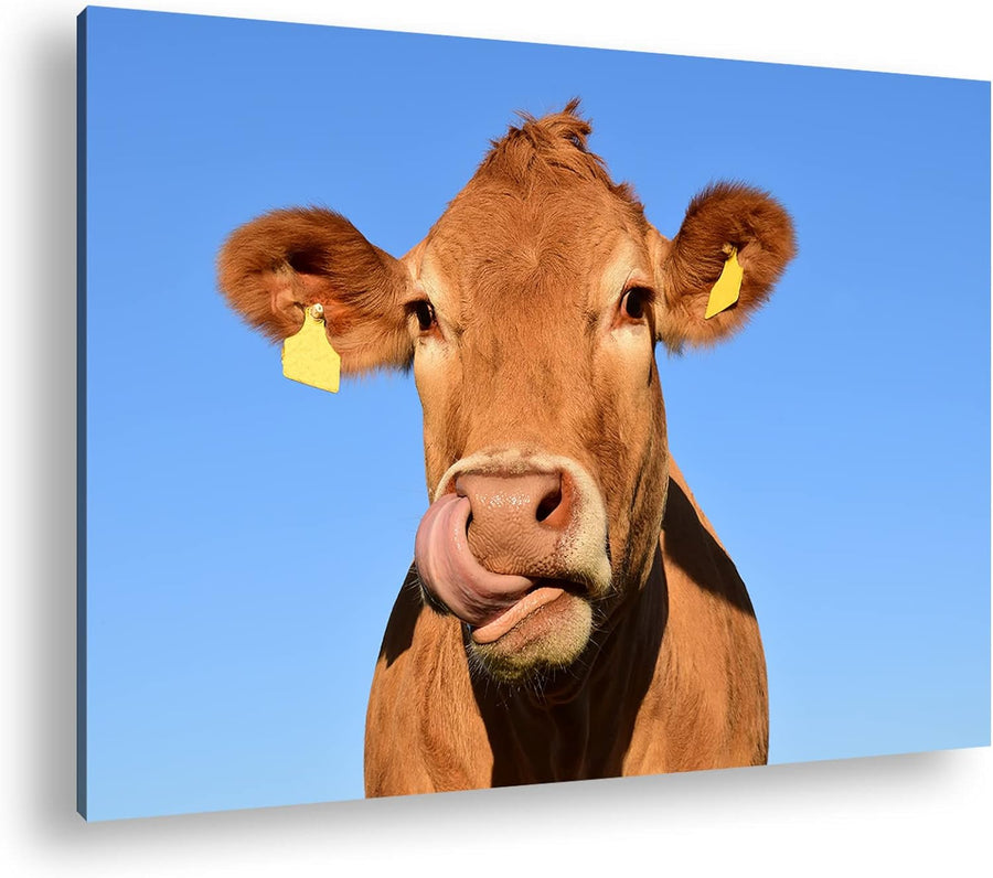 deyoli lustige Kuh Format:90x60 cm als Leinwandbild, Motiv fertig gerahmt auf Echtholzrahmen, Hochwe