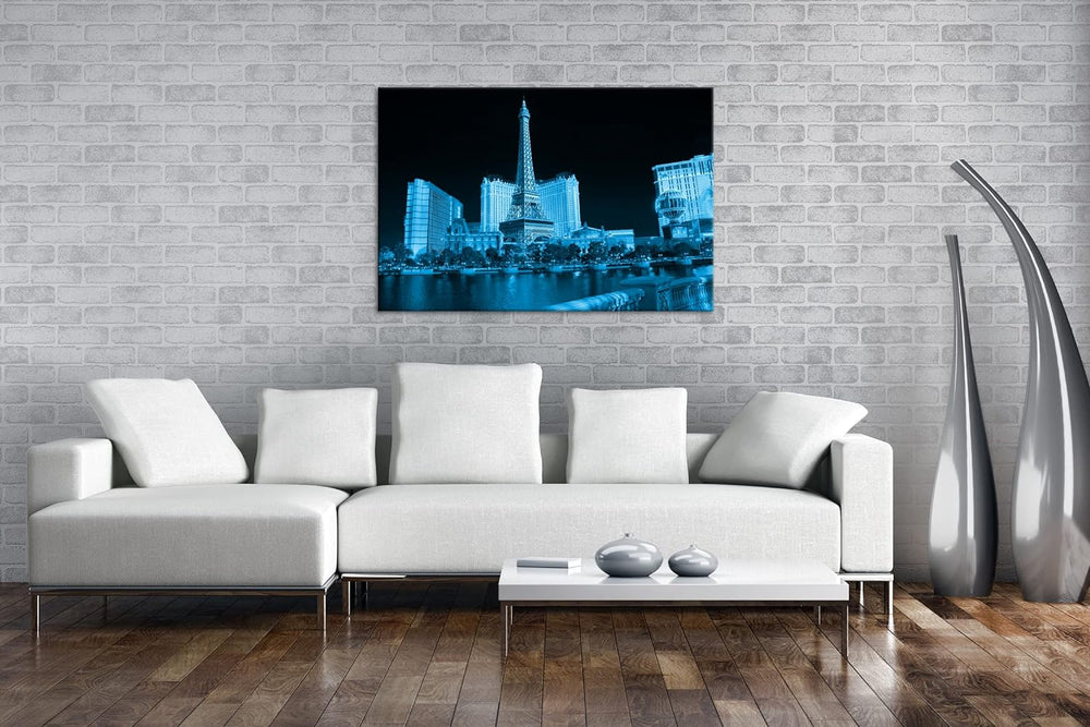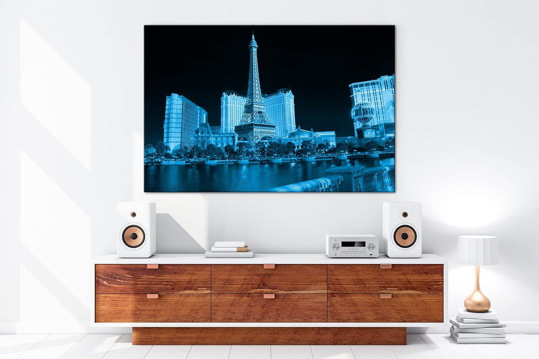 deyoli Miniatur Eiffelturm in Las Vegas Format 100x70 Effekt: Monocrome Blau als Leinwandbild, Motiv