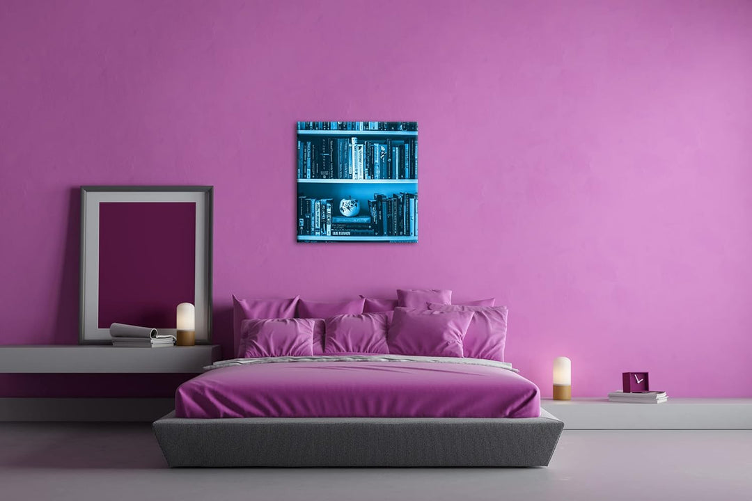deyoli rand volles Bücherregal Format: 70x70 cm als Leinwandbild Effekt: Monocrome Blau, Motiv ferti