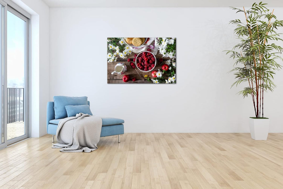 deyoli Reife Himbeeren Format: 80x60 als Leinwand, Motiv fertig gerahmt auf Echtholzrahmen, Hochwert