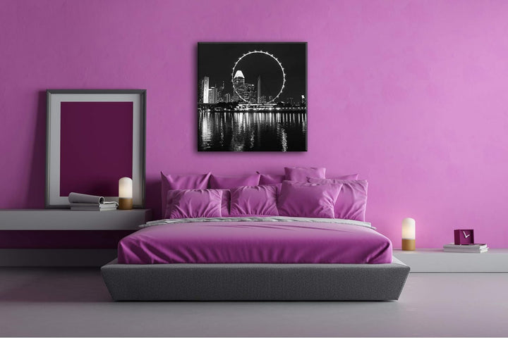 deyoli Riesenrad in Singapur im Format: 60x60 Effekt: Schwarz&Weiss als Leinwandbild, Motiv auf Echt