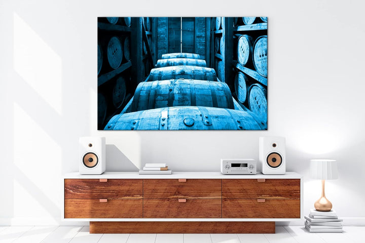 deyoli riesige Fässer in Brennerei Format 80x60 Effekt: Monocrome Blau als Leinwandbild, Motiv ferti