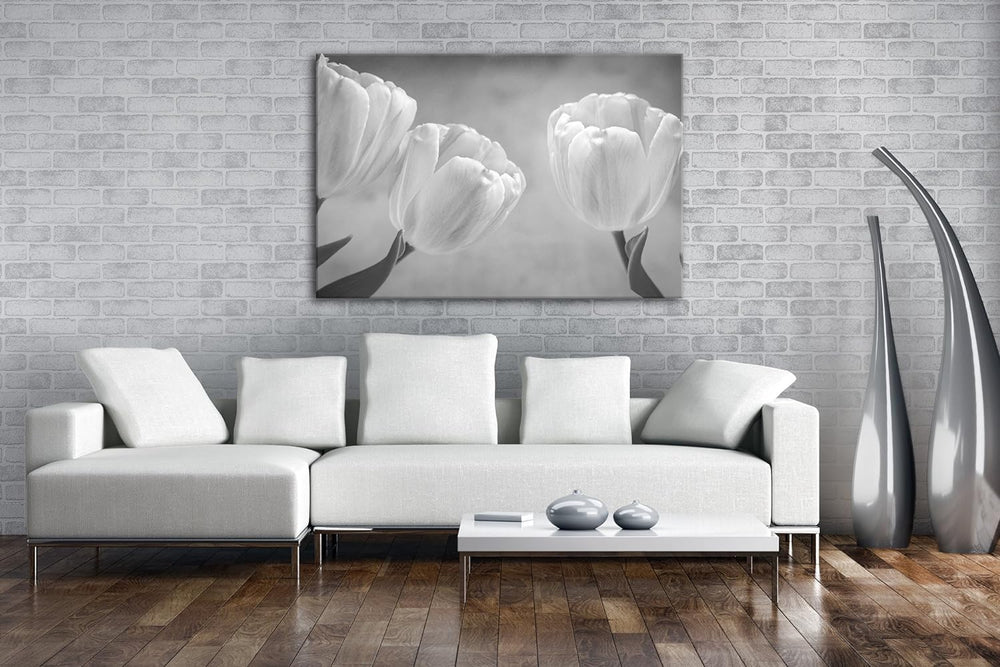 deyoli Rosafarbene Tulpen Effekt: Schwarz/Weiss Format: 100x70 als Leinwandbild, Motiv fertig gerahm