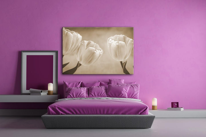 deyoli Rosafarbene Tulpen Format: 80x60 Effekt: Sepia als Leinwandbild, Motiv fertig gerahmt auf Ech